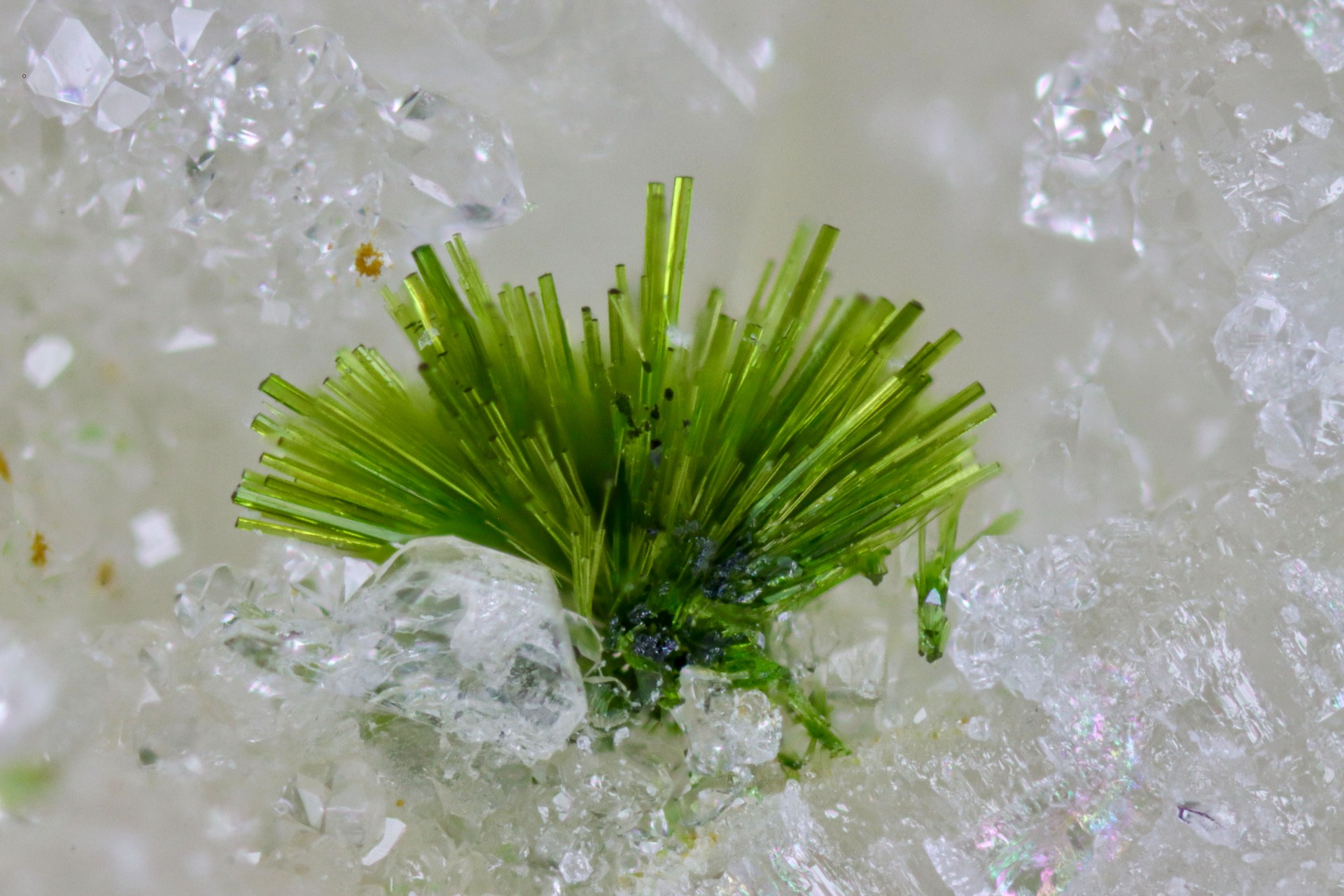 This website is dedicated to my passion: collecting, studying, processing, exchanging and photographing microminerals. Almost all specimens are from my personal collection, just a few are from my collecting friends. In every picture the FOV is mentioned, which stands for Field of View: the width of the picture. Some microcrystals measure up to 5 mm, and some are even smaller than 0,5 mm, most are between 1 and 3 mm. Mineral specimens of this size, when mounted in a transparent box, are called micromounts.